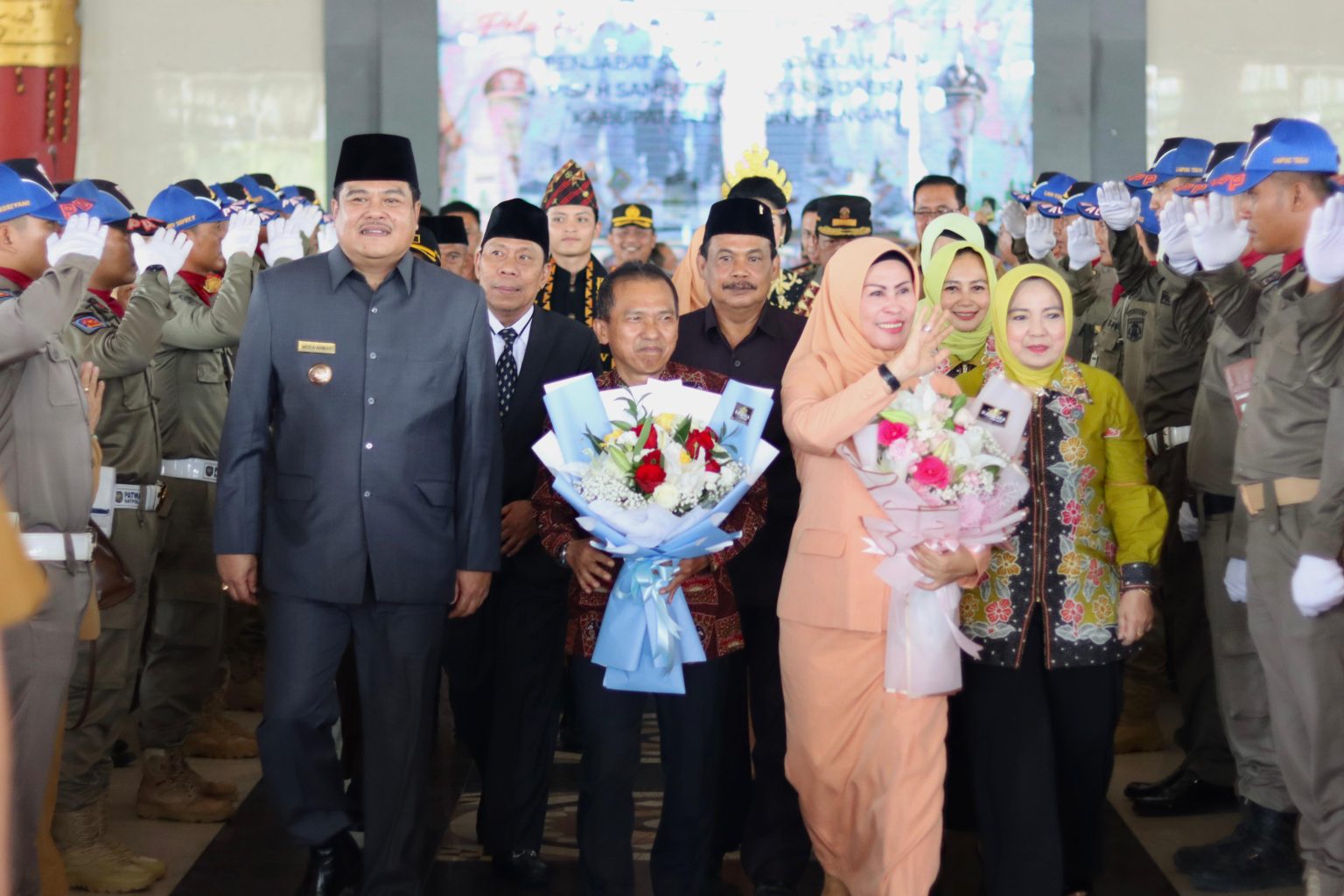 Lampung Tengah – Masa jabatan Nirlan, S.H, M.M Sekretaris Daerah Pemerintah Kabupaten Lampung Tengah telah berakhir (Pensiun) digantikan oleh Pj. Sekda Lampung Tengah Drs. Kusuma Riyadi, M.M. Acara pisah sambut dari Sekda yang lama ke Pj. Sekda yang baru berlangsung di sesat Agung Nuwo Balak selasa, (02/01/2024). Dalam acara yang diselenggarakan oleh Pemerintah Daerah tersebut hadir Bupati Lampung Tengah, Ketua DPRD, Forkopimda, Kepala Perangkat Derah, Ketua TP.PKK, para camat, Serta ASN di Lingkungan Pemkab Lampung Tengah.