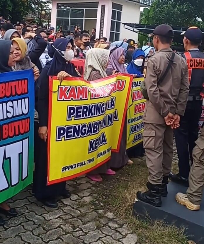 Aksi Demo Damai Tenaga Honorer dan P3K dari Berbagai Dinas Intansi Pemerintah Daerah Lampung Tengah Menuntut Hak Nasibnya