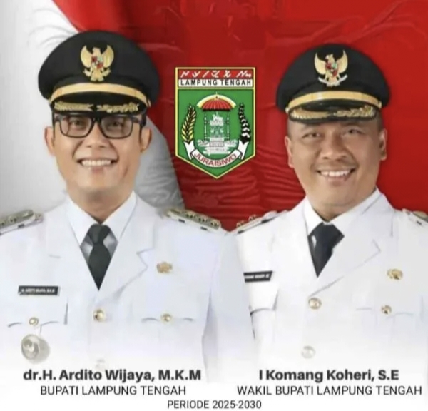 Salah satunya bupati dan wakil bupati Lampung Tengah dr Ardito Wijaya dan I Komang Koheri telah resmi di lantik menjadi bupati dan wakil bupati periode 2025-2030