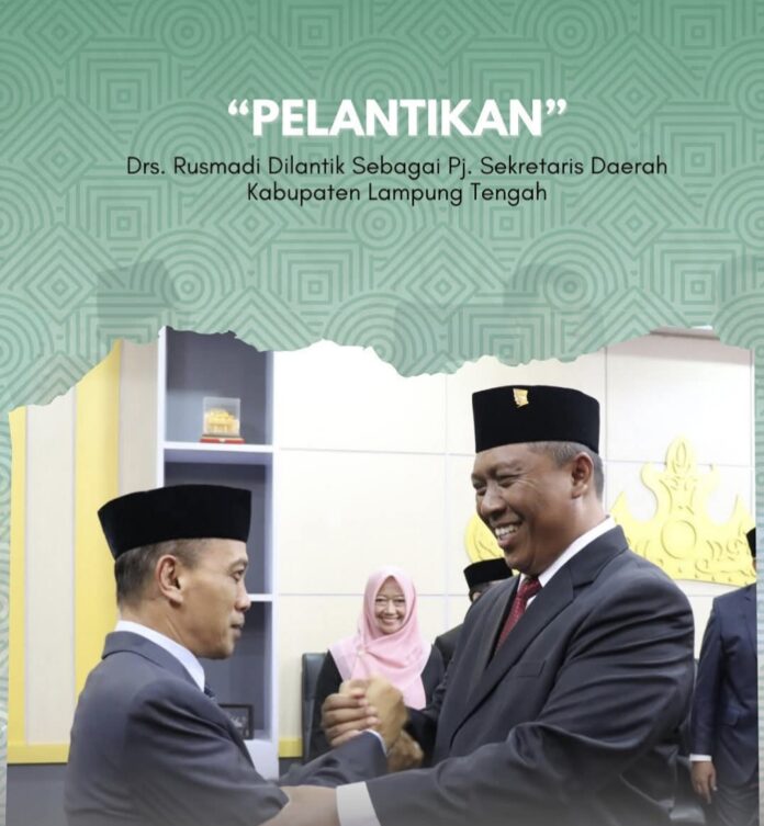 Lampung tengah – Wakil Bupati Kabupaten Lampung Tengah, I Komang Koheri, S.E, melantik Drs. Rusmadi, M.M sebagai Penjabat (Pj) Sekretaris Daerah (Sekda) Kabupaten Lampung Tengah, bertempat di Ruang Rapat Subing, Kantor Bupati Lampung Tengah. Selasa (11/3/2025).