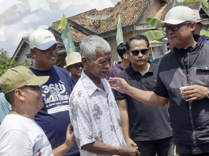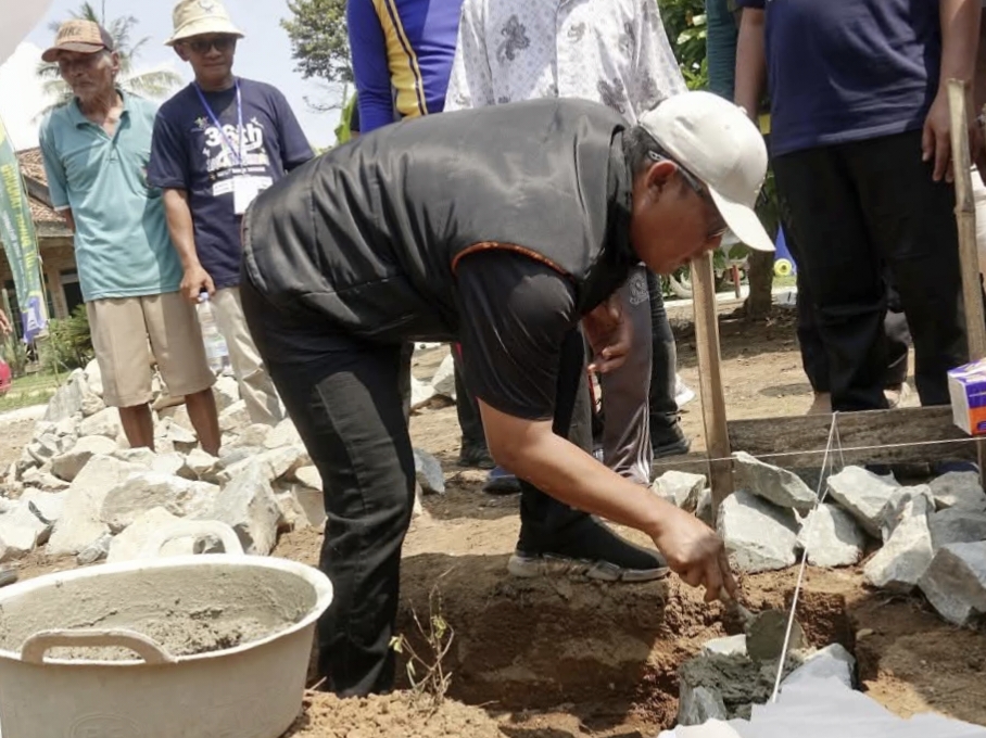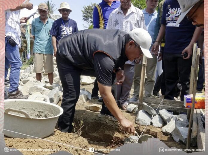 Lampung tengah – Bupati Lampung Tengah, Ardito Wijaya menghadiri kegiatan peletakan batu pertama pada pembangunan bedah rumah tak layak huni di Kampung Payung Batu, Kecamatan Pubian. Minggu (27/4/2025).